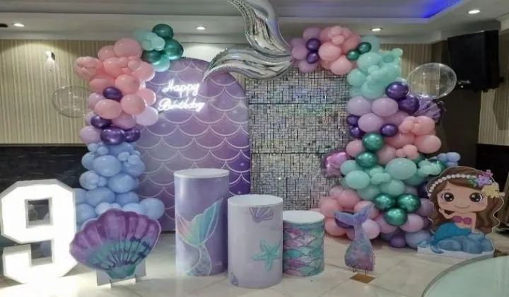 انواع تم بادکنک آرایی روی بنر بگراند های پولکی و پنجره ای و نیم حلال و حلقه و چوبی انواع استند های شخصیت های مورد علاقهی کودکتان و.....